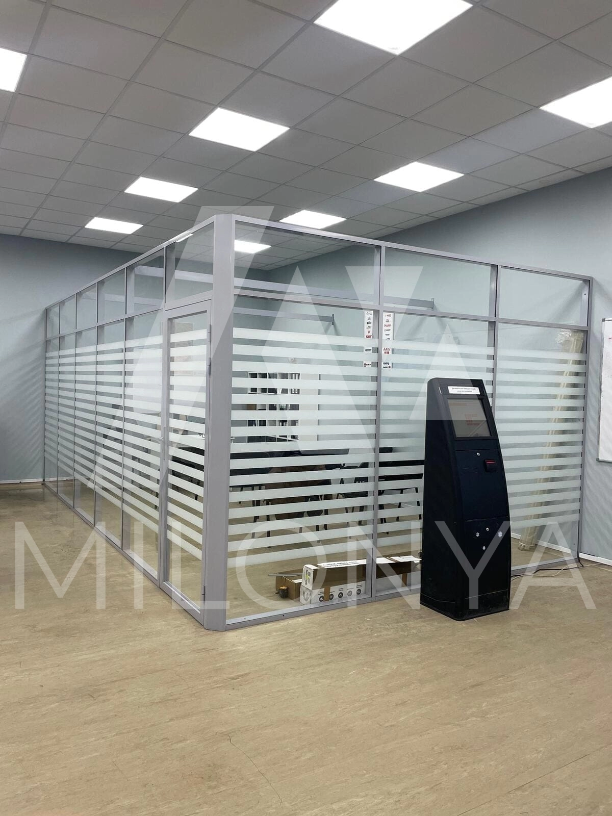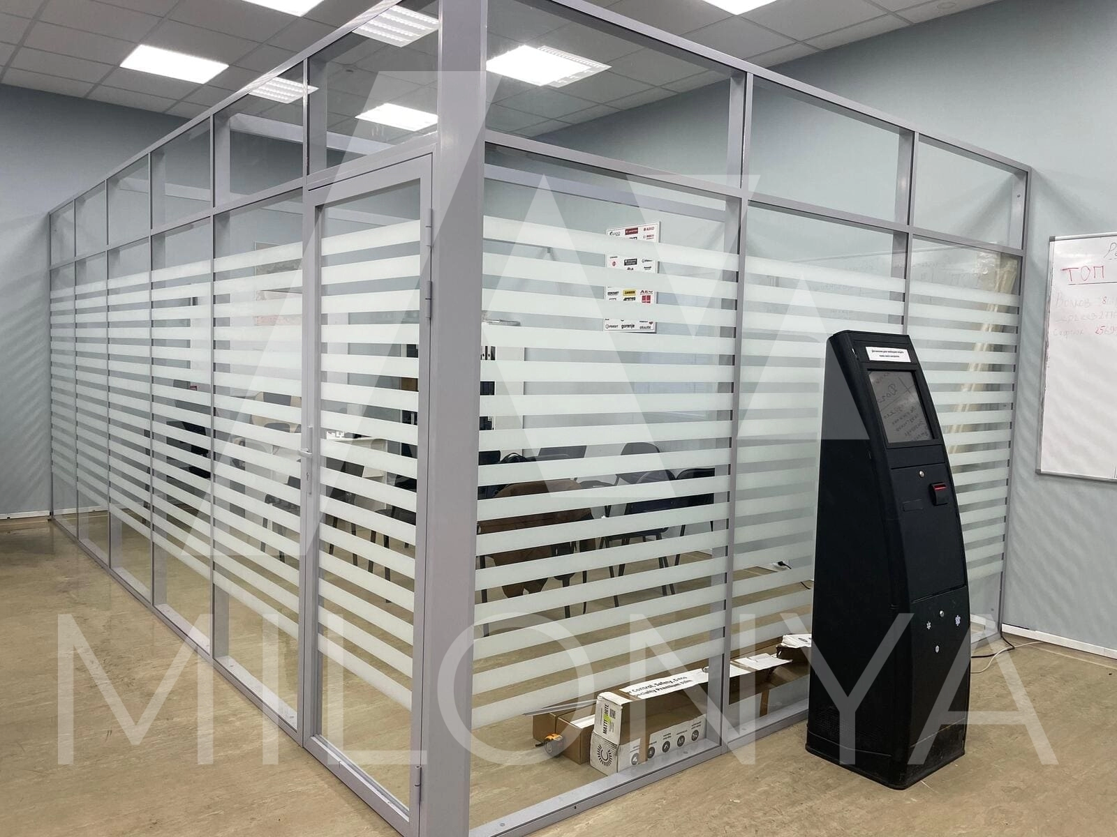 Оклейка стеклянных перегородок матовой пленкой - ул. Тюшина